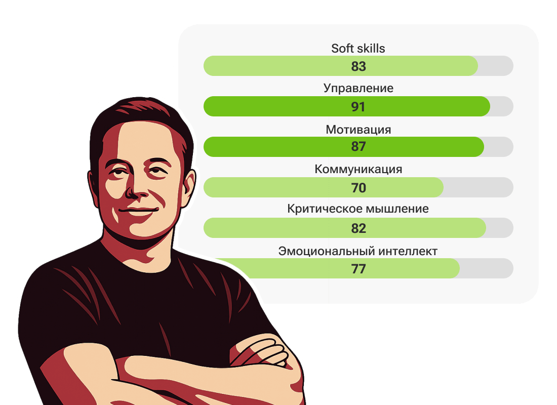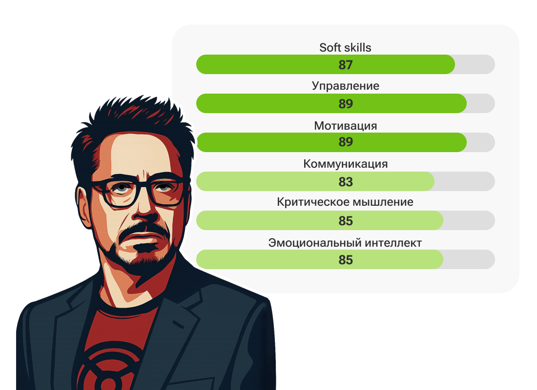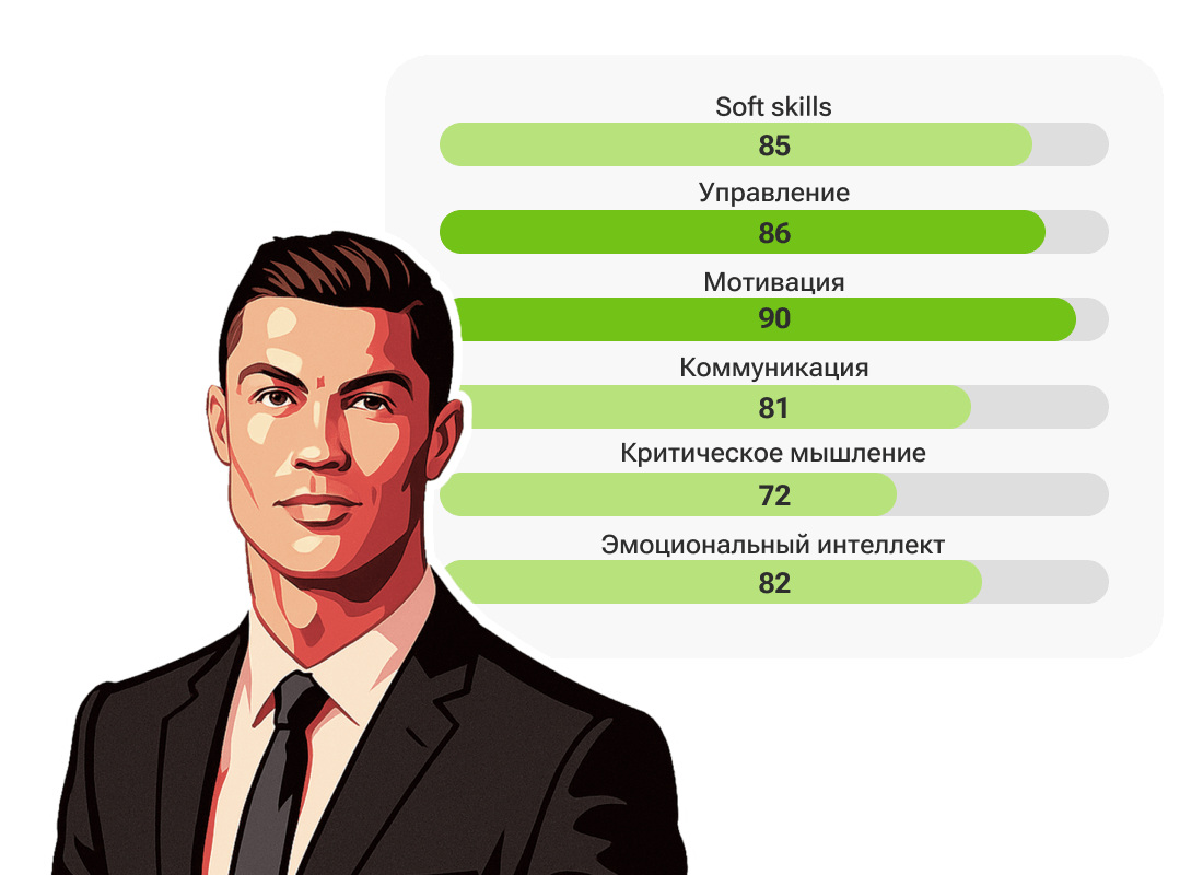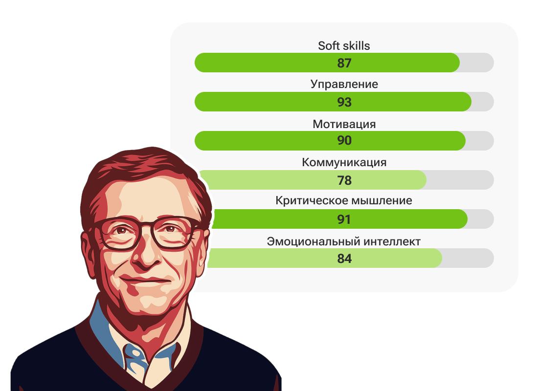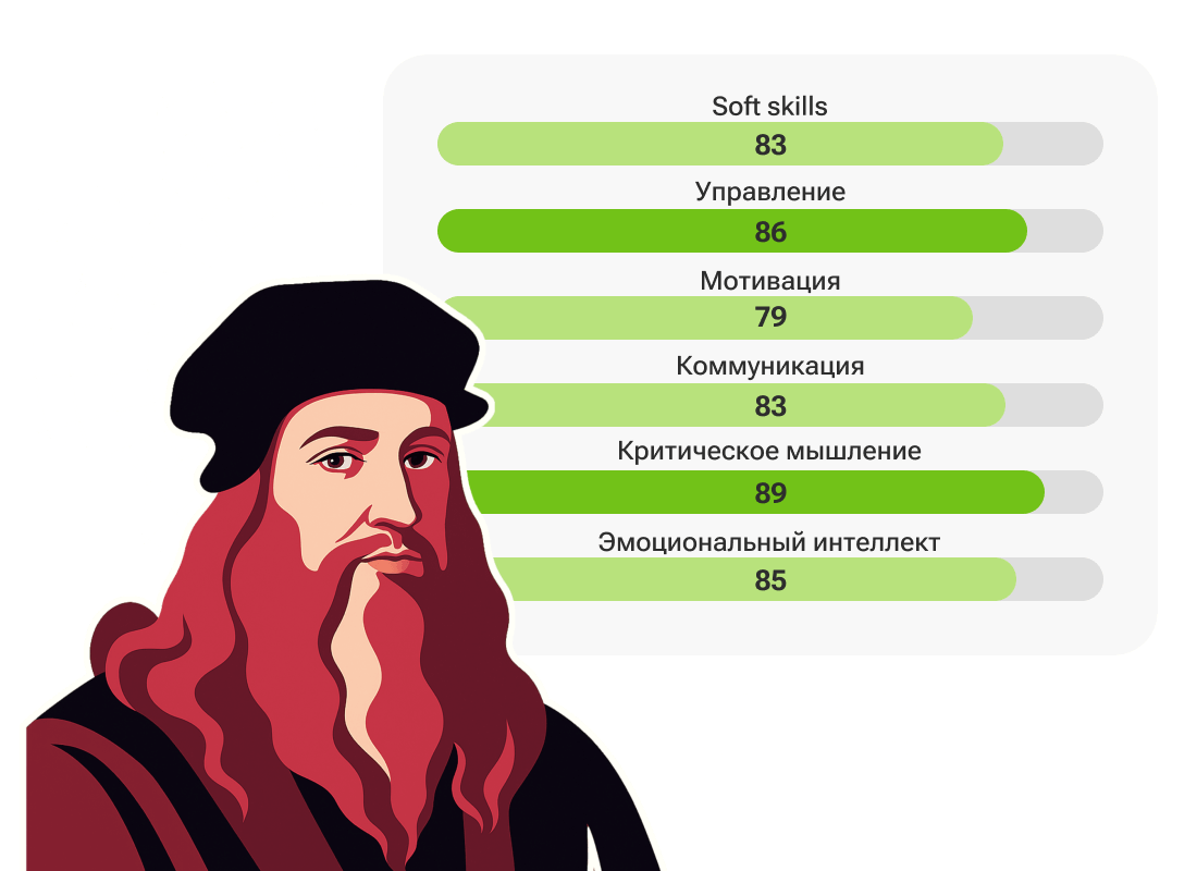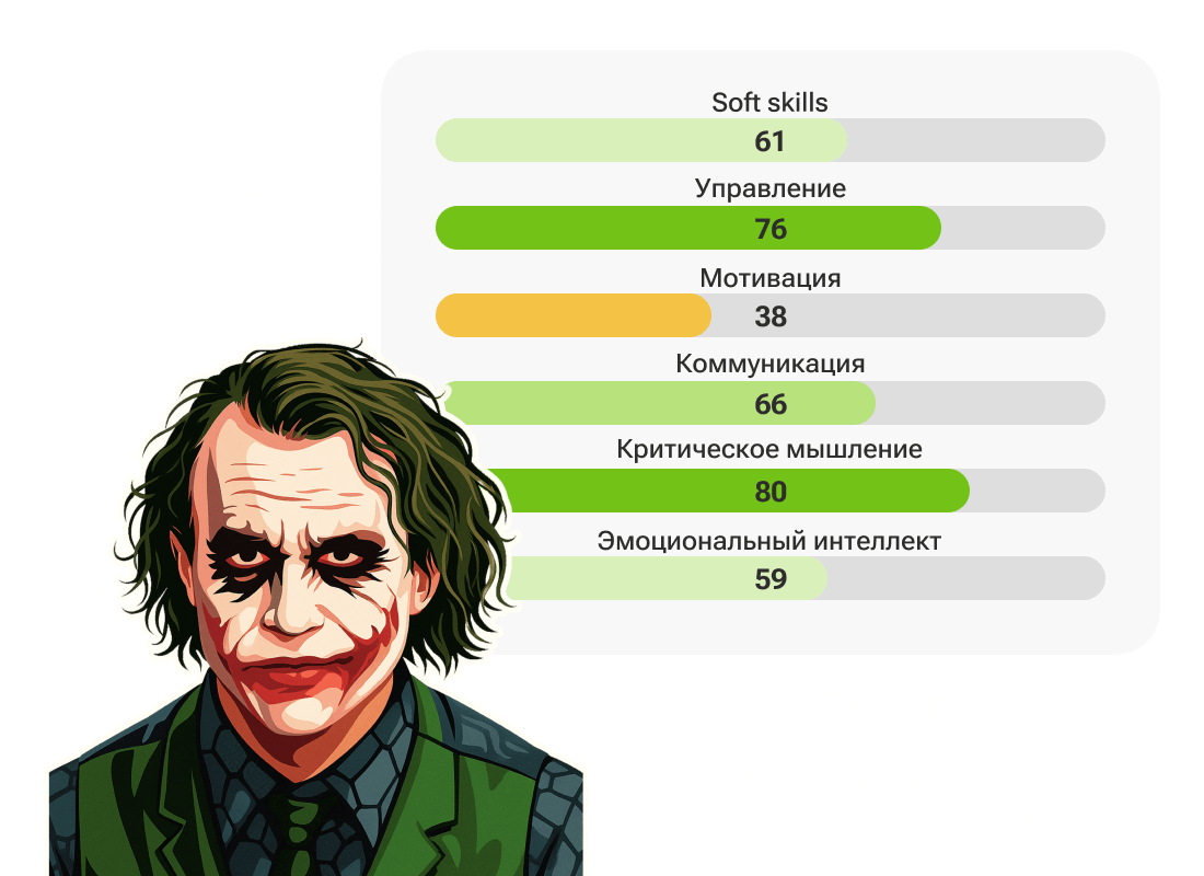На ИТ-платформе SkillCode ты получишь подробный отчет в визуальном, текстовом и числовом виде, который позволяет максимально быстро определить все твои сильные стороны, а также увидеть те, которые необходимо развивать именно тебе для гармонизации личности и повышения эффективности в профессиональной и личной жизни